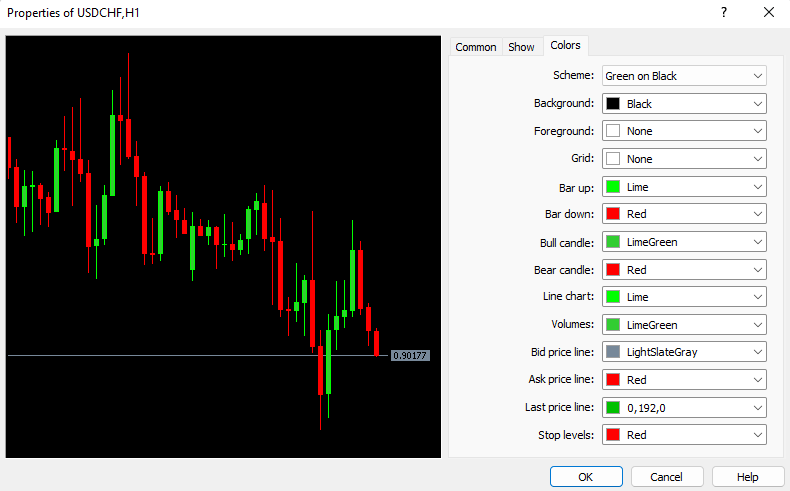 Right-click on any chart, choose ‘Properties’, and adjust colors, gridlines, and more to your preference. MT5 provides various chart types, including Bar, Candlestick, and Line charts.